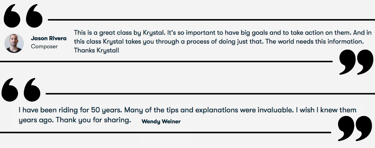 That's ok! Life happens. That is why you have lifetime access to this entire course. So you can watch it again 3 years from now and do it in your own time. We've had some students breeze through in 6 weeks, others took 6 months. It all depends on your experience level, how many times you ride each week and commitment to the program. Either way, we will help you get there in YOUR time!